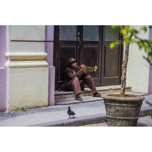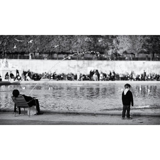 Playing For Pigeons Black Modern Wood Framed Art Print by Hatherill, Colin
