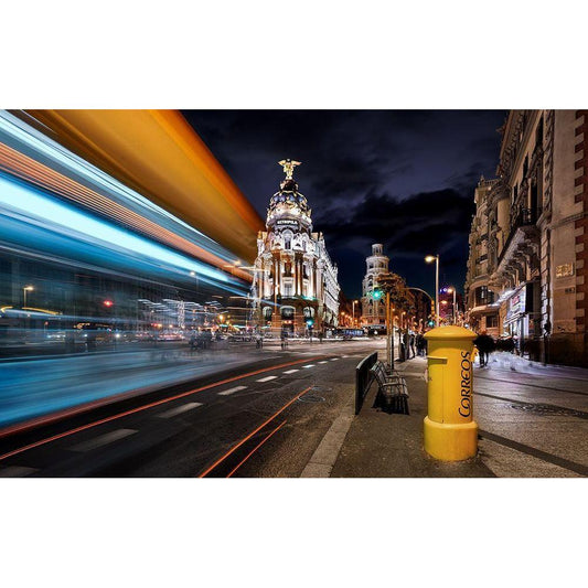 Madrid City Lights Iii Black Modern Wood Framed Art Print by M. Garcia, Jesus