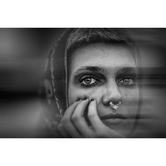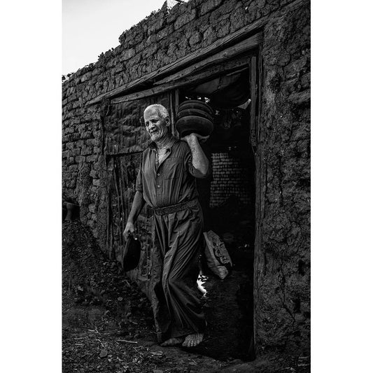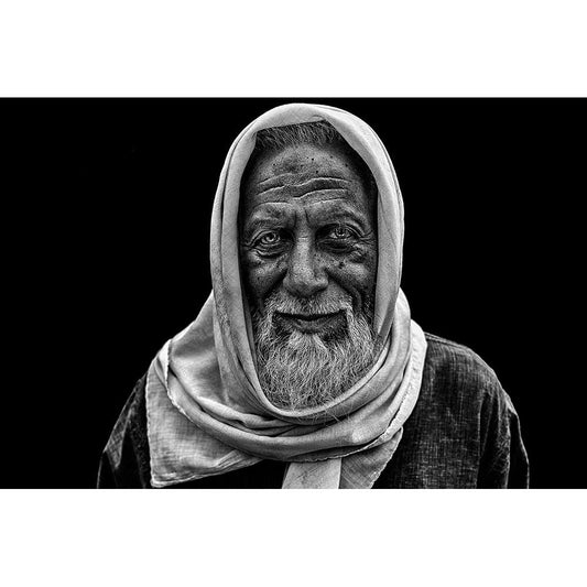 Smile Of An Old Man Black Modern Wood Framed Art Print by P Roy, Partha
