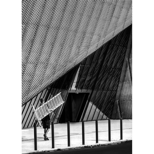 Man With A Ladder. Black Modern Wood Framed Art Print by Niemiec, Anna