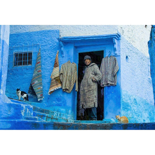 Blue House Man Black Modern Wood Framed Art Print by Taneda, Toshio