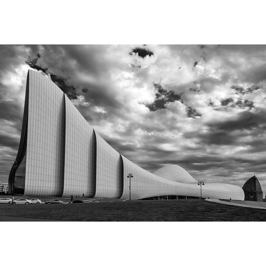 Zaha Hadid Creature In Baku Black Modern Wood Framed Art Print by Mghebrishvili, Nino