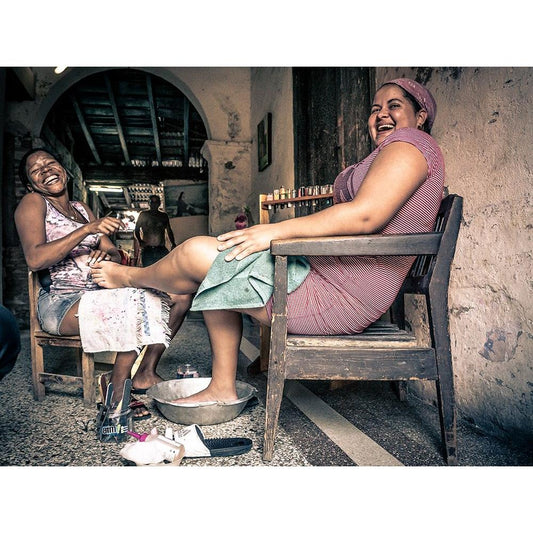 Pedicure In Santiago The Cuba Black Modern Wood Framed Art Print by Alcalay, Eyal
