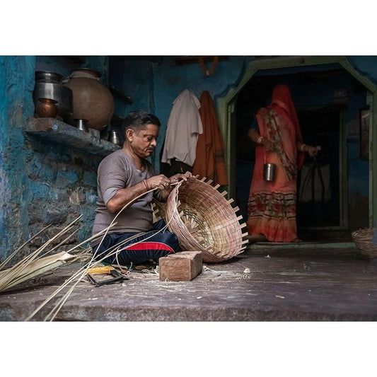 Basket Weaver Black Modern Wood Framed Art Print by Singh, Anita