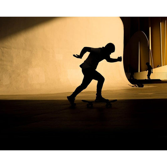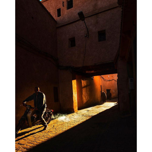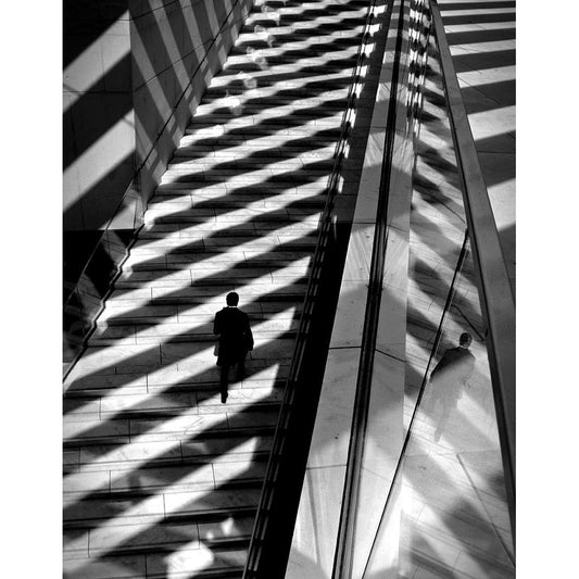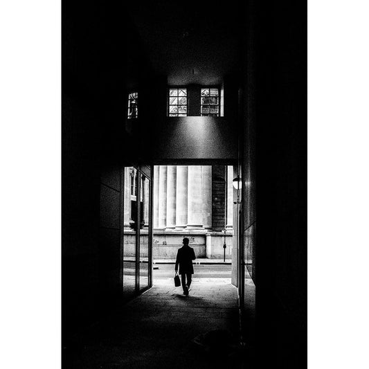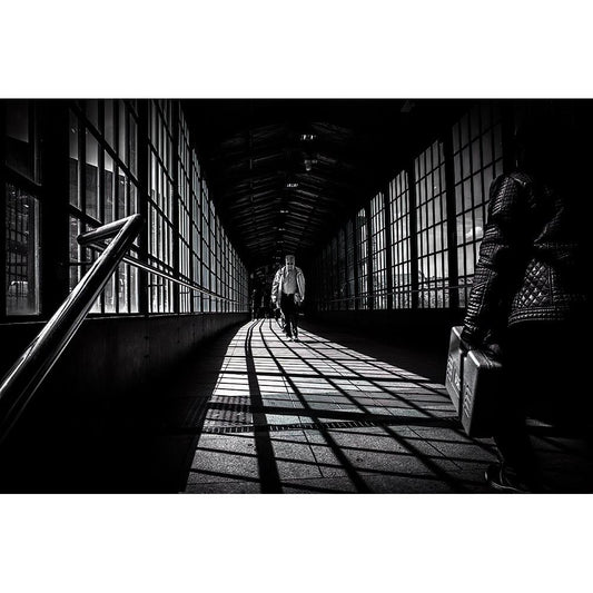 Walking Light And Shadows Black Modern Wood Framed Art Print by Ezequiel59