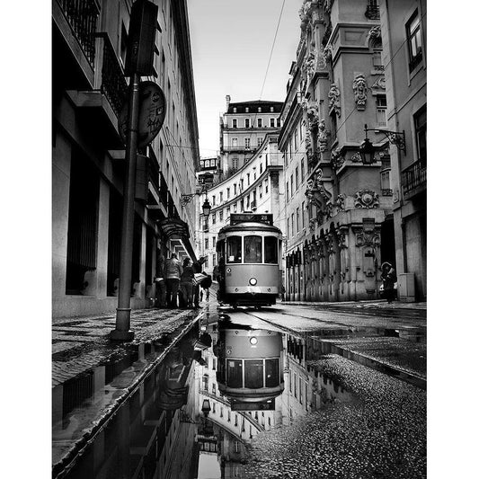 Rainy Days In Lisbon Black Modern Wood Framed Art Print by Ezequiel59