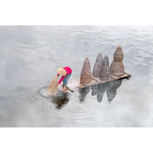 Catching The Fish Black Modern Wood Framed Art Print by Herliyanto, Gatot