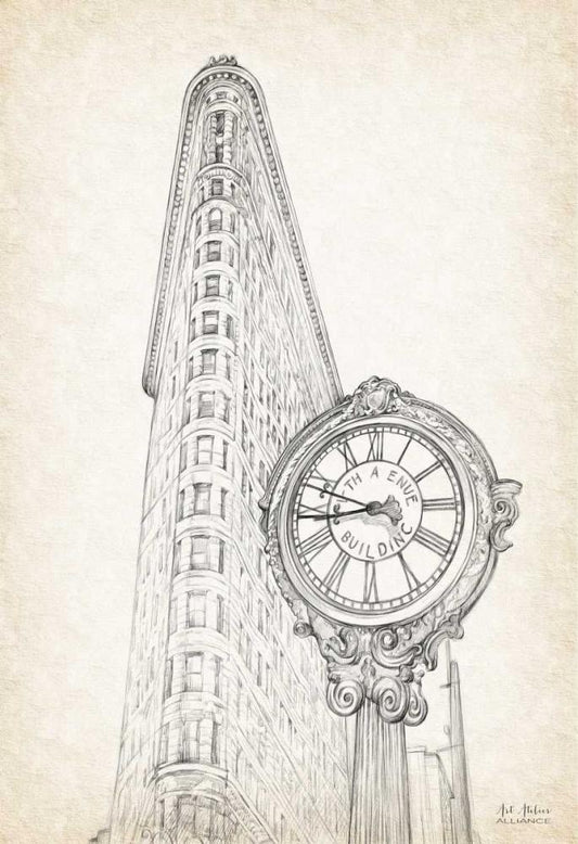 New York Sketch Pen and Ink White Modern Wood Framed Art Print with Double Matting by Art Atelier Alliance