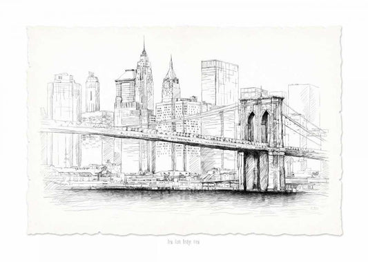 Brooklyn Bridge Pen and Ink White Modern Wood Framed Art Print with Double Matting by Art Atelier Alliance