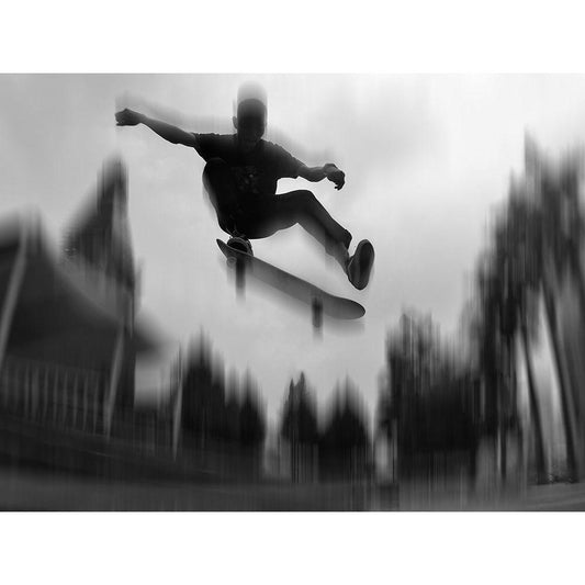 Skate Rider Black Modern Wood Framed Art Print by Domenichi, Luca