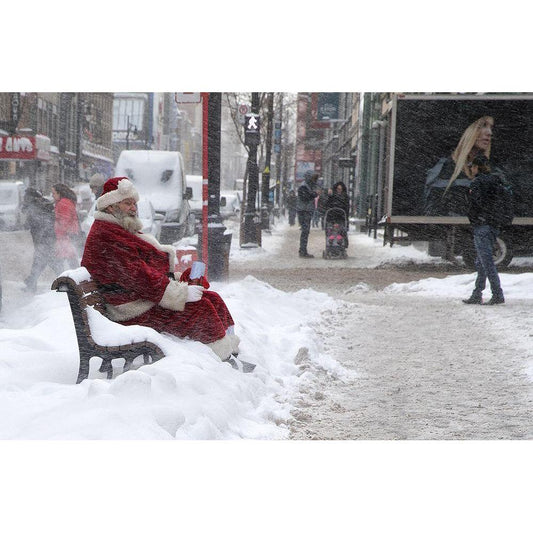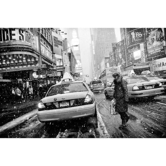 New York In Blizzard Black Modern Wood Framed Art Print by Froyda, Martin