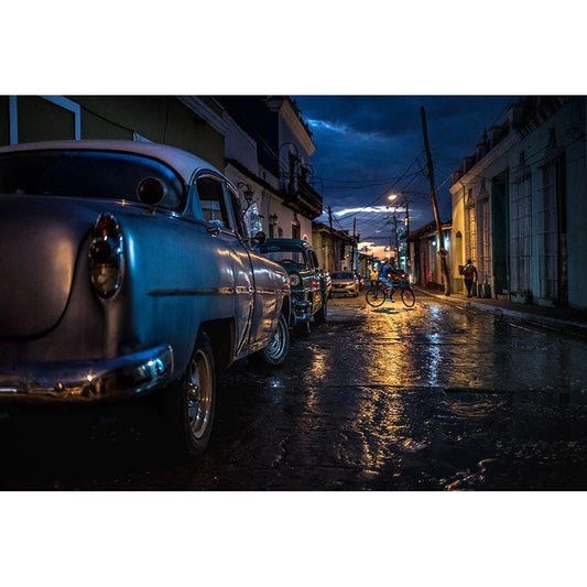 Riding The Cuban Streets Black Modern Wood Framed Art Print by Tagliarino, Marco