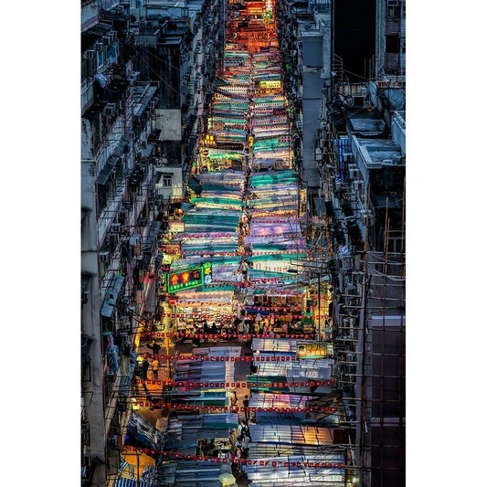 Night Market Black Modern Wood Framed Art Print by Abdualhameid, Fahad