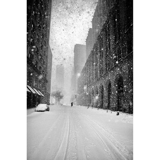 New York Walker In Blizzard Black Modern Wood Framed Art Print by Froyda, Martin