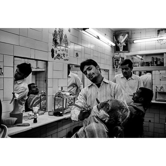 Barbearia Black Modern Wood Framed Art Print by Godinho, Luis