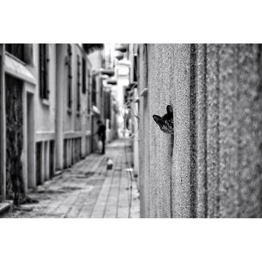 Street Photographer Black Modern Wood Framed Art Print by Wang, Jian
