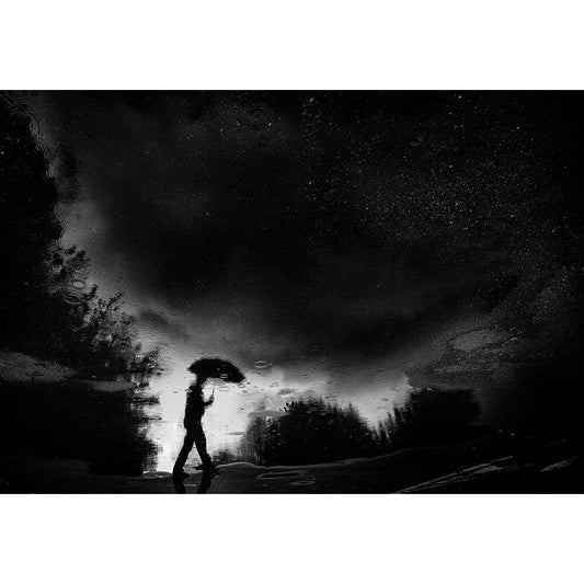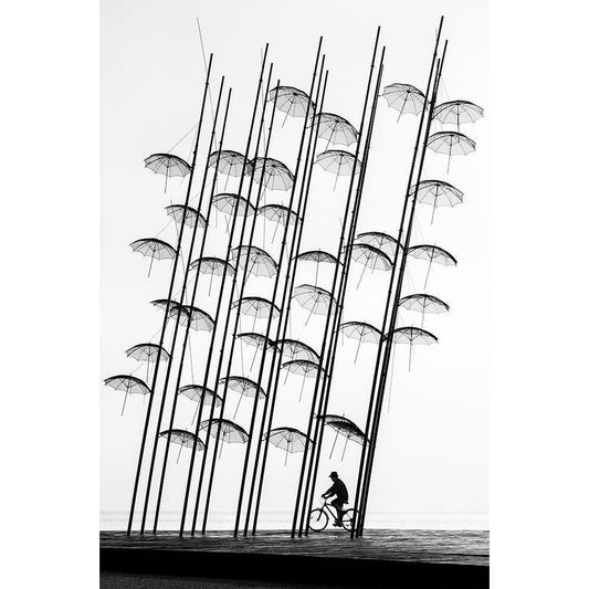 Under The Umbrellas Black Modern Wood Framed Art Print by Digalakis, George