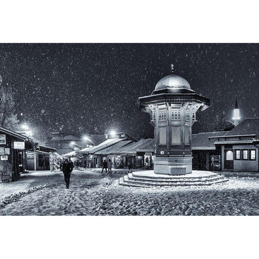 Winter In Sarajevo Black Modern Wood Framed Art Print by Dan, Bez