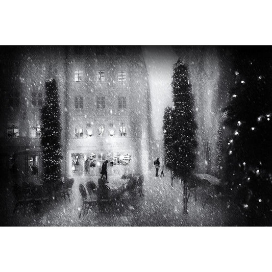 Christmas In The City Black Modern Wood Framed Art Print by Schleicher-Schwarz, Roswitha