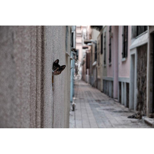 Dantel Street Cat Black Modern Wood Framed Art Print by Ayer, Ali