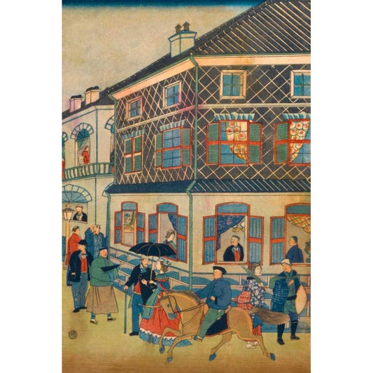 Foreign business district in Yokohama #1 Black Modern Wood Framed Art Print by Hiroshige, Utagawa