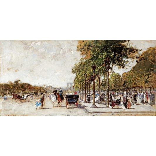Les Champs Elysees, Paris Black Modern Wood Framed Art Print by Loir, Luigi