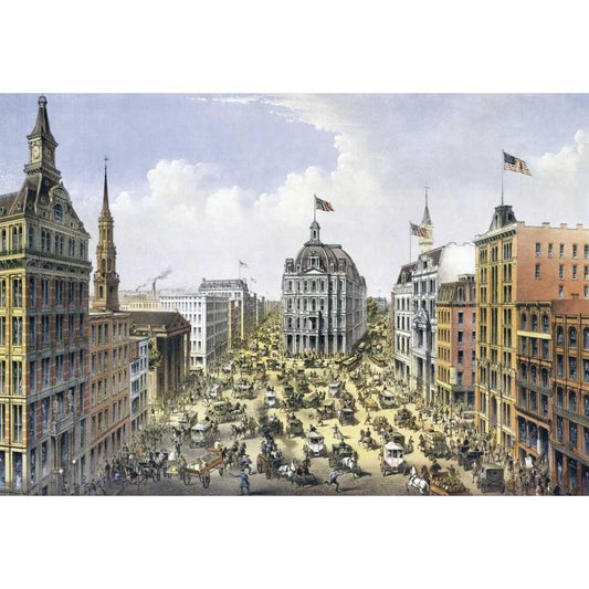 Broadway New York Black Modern Wood Framed Art Print by Currier and Ives
