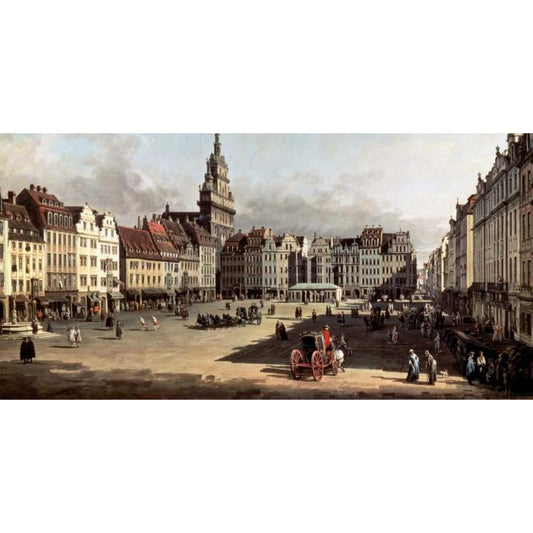 Dresden, the Old Market from Castle Street Black Modern Wood Framed Art Print by Bellotto, Bernardo