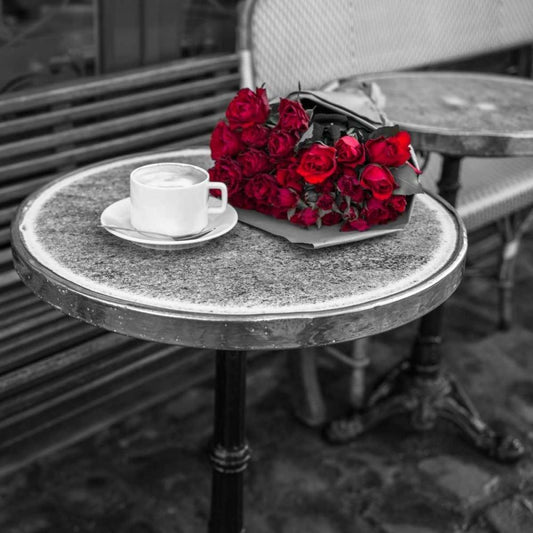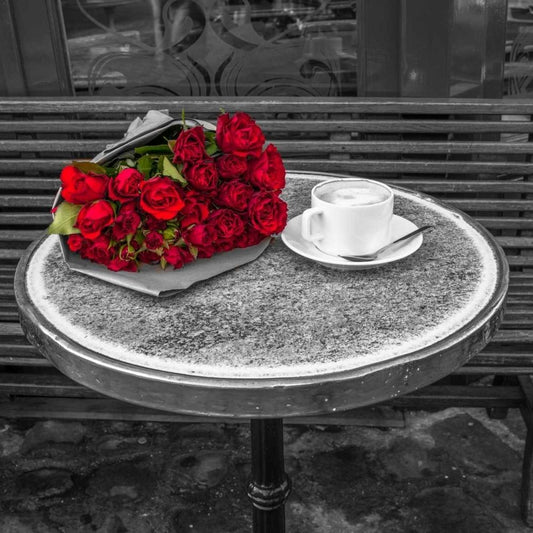 Bunch of Roses on street cafe table in Paris, France Black Modern Wood Framed Art Print by Frank, Assaf