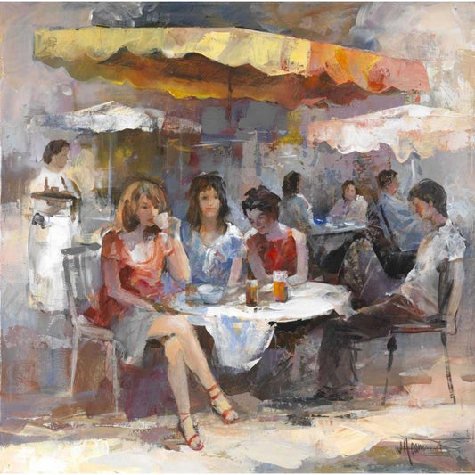 Cafe on street of Montmartre, Paris Black Modern Wood Framed Art Print by Frank, Assaf