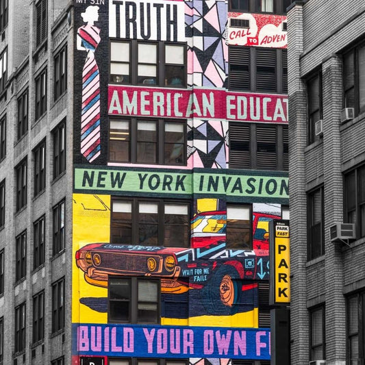 Advertisements on building exterior, New York Black Modern Wood Framed Art Print by Frank, Assaf