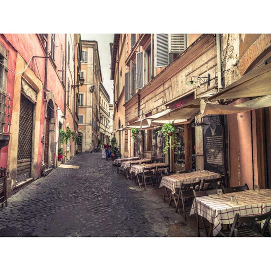 Street cafe in Rome Black Modern Wood Framed Art Print by Frank, Assaf