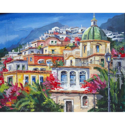 Positano Black Modern Wood Framed Art Print by di Viccaro, Roberto