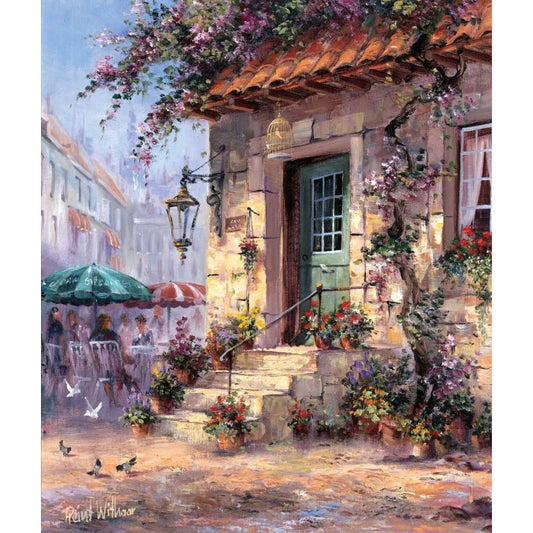 Sidewalk cafe Black Modern Wood Framed Art Print by Withaar, Reint