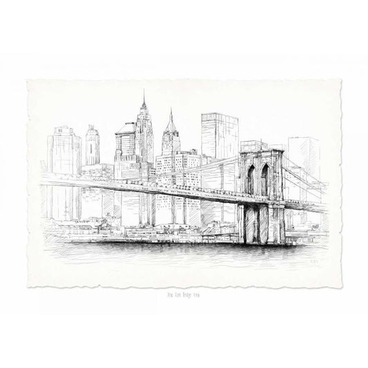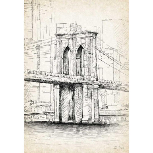 Brooklyn Bridge Pen and Ink Black Modern Wood Framed Art Print by Art Atelier Alliance
