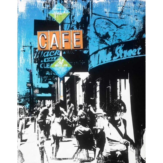 Street Side Cafe Black Modern Wood Framed Art Print by Stefano