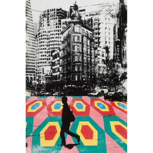 Urban Collage Walk Black Modern Wood Framed Art Print by Fainelli, Deanna