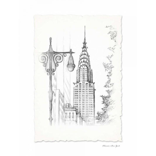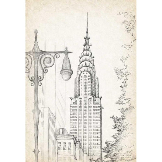 New York Sketch Pen and Ink Black Modern Wood Framed Art Print by Art Atelier Alliance