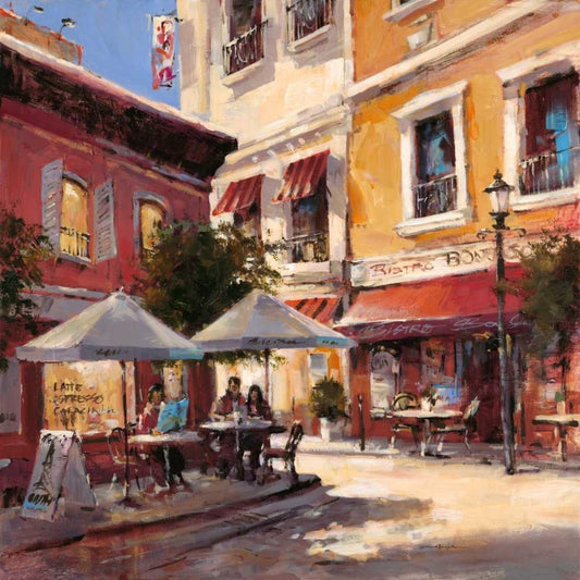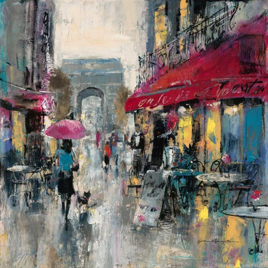 Cafe Stroll Black Modern Wood Framed Art Print by Heighton, Brent