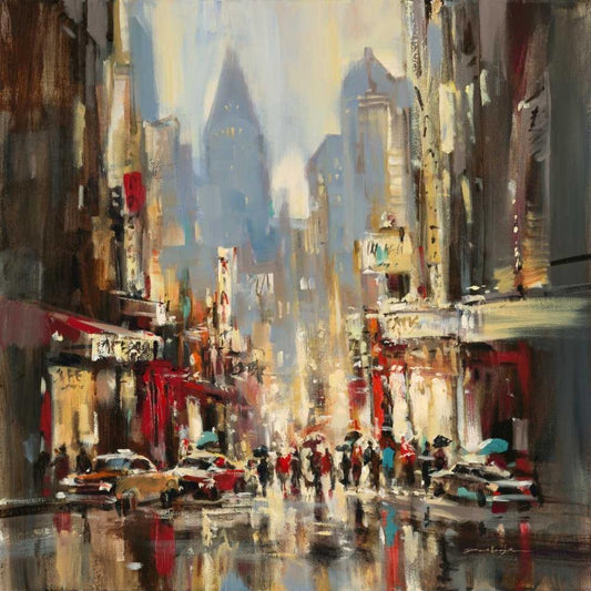 New York Rain Black Modern Wood Framed Art Print by Heighton, Brent