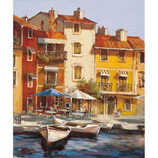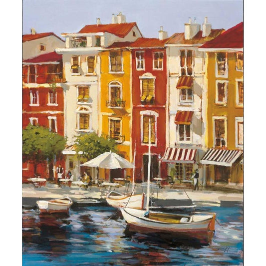 Mediterranean Waterfront I Black Modern Wood Framed Art Print by Heighton, Brent