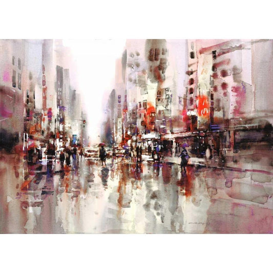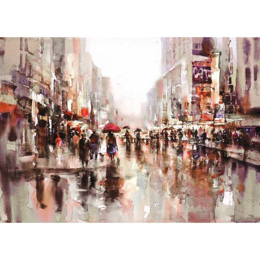 City Rain 1 Black Modern Wood Framed Art Print by Heighton, Brent
