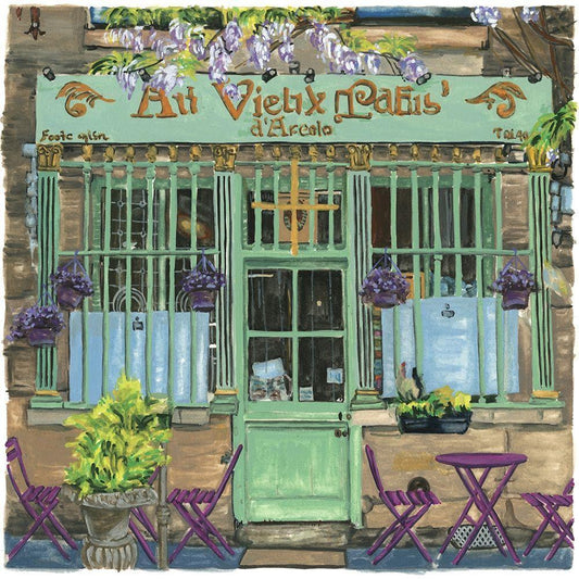 Cafe Roma Black Modern Wood Framed Art Print by Stevens, Allayn
