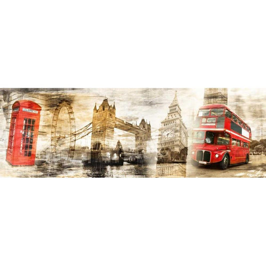 Collage London 01 Black Modern Wood Framed Art Print by Adamsky
