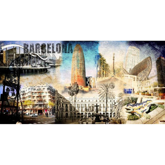 Barcelona Collage 01 Black Modern Wood Framed Art Print by Adamsky