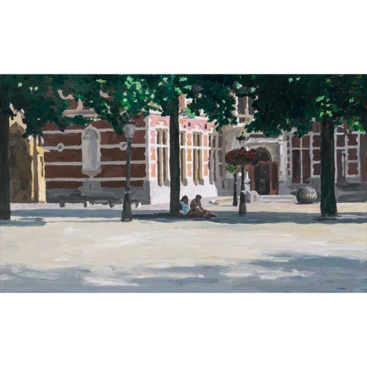 Market Square Black Modern Wood Framed Art Print by Haenraets, Willem