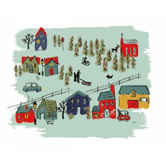 Winter Village I Green Black Modern Wood Framed Art Print by York, Leah