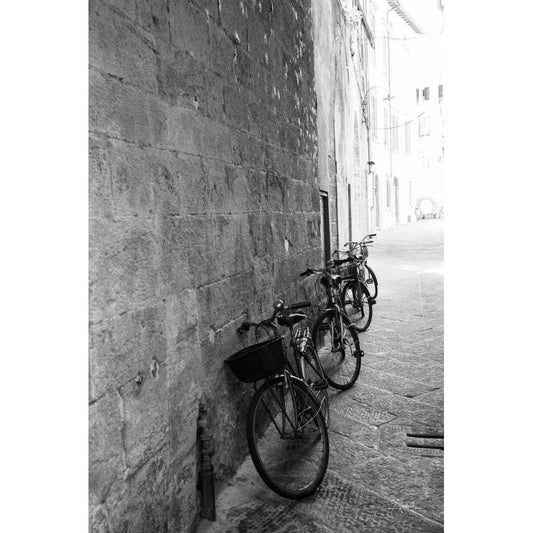 Bicycles in the Alley Black Modern Wood Framed Art Print by Aledanda