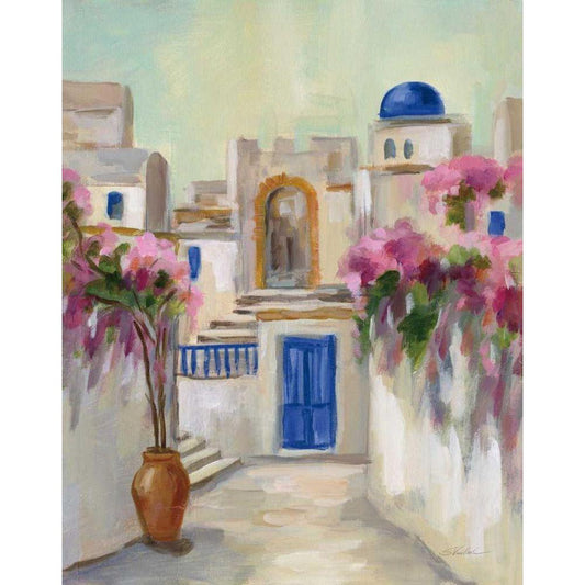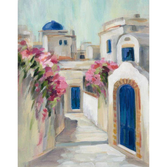 Santorini Street I Black Modern Wood Framed Art Print by Vassileva, Silvia
