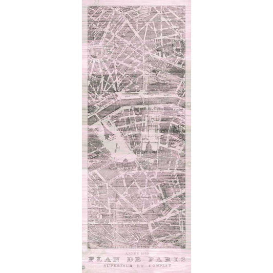 Plan de Paris Panel on Wood v2 Blush Black Modern Wood Framed Art Print by Wild Apple Portfolio